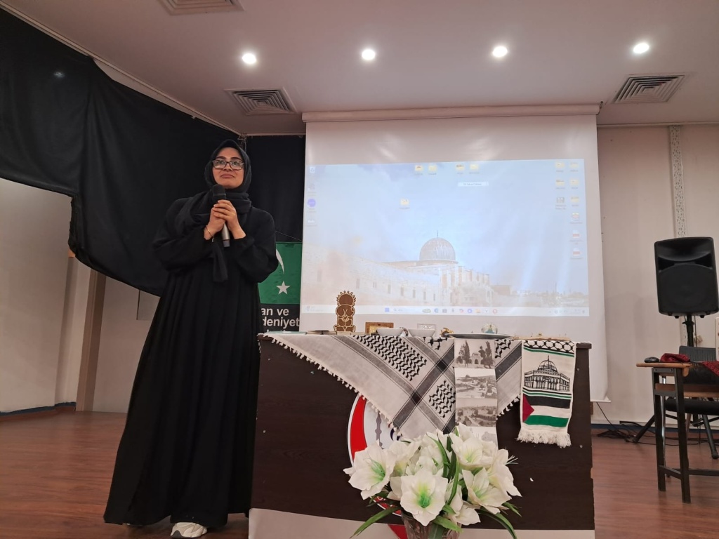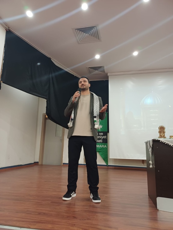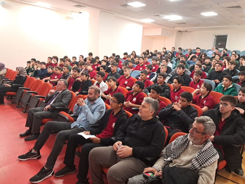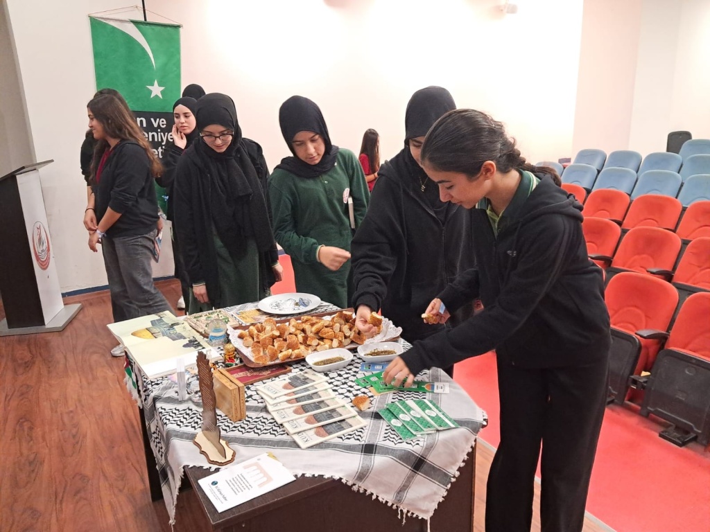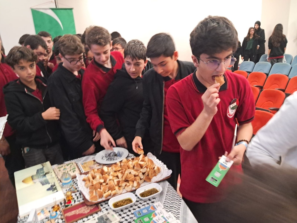 ÖĞRENCİLERİMİZLE PAYLAŞMASI, ORADA YAŞANAN İSRAİL ZULMÜNÜN GÜN YÜZÜNE BİR KEZ DAHA ÇIKARILMASI ETKİLEYİCİDİYDİ. MESCİD-İ AKSA VE KUBBETÜ'S-SAHRA'NIN ÖZELLİKLERİ, ANİMASYON EŞLİĞİNDE İÇİNİN ZİYARET EDİLMESİ AYRICA DİKKAT ÇEKİCİ OLMUŞTUR. PROGRAMIN SONUNDA FİLİSTİN'E AİT KİTAP, BROŞÜR, AYRAÇ, ZEYTİNYAĞI EŞLİĞİNDE SİMİT İKRAMI DA ÖĞRENCİLERİMİZ TARAFINDAN KABUL GÖRMÜŞTÜR.