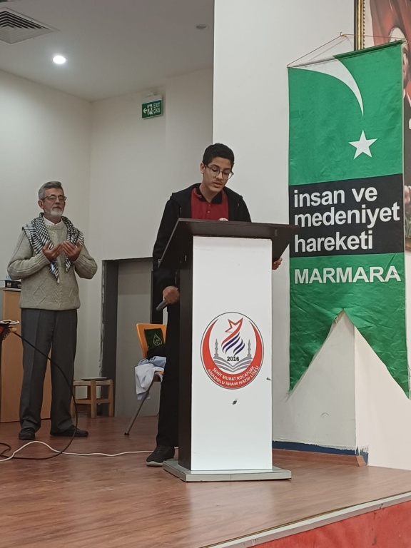 ÇEDES KULÜBÜMÜZ İLE İNSAN VE MEDENİYET HAREKETİ MARMARA DERNEĞİ'NİN BİRLİKTE TERTİP ETTİKLERİ MESCİD-İ AKSA VE GAZZE KONULU PROGRAMIMIZA GEZİ VE GÖZLEMLERİNİ İSLAMÎ ŞUUR BİLİNCİYLE ÖĞRENCİLERİMİZE AKTARAN DERNEĞİN ÜYELERİNDEN AYŞE BÜŞRA ÇELİK VE FEYZİ ÖZEK'E ÇOK TEŞEKKÜR EDERİZ. PROGRAMA ÖĞRENCİLERİMİZİN ŞİİR OKUMALARIYLA BAŞLANMIŞ, MESCİD-İ AKSA'NIN SLAYT GÖRÜNTÜLERİYLE DEVAM EDİLMİŞTİR. AYŞE BÜŞRA HANIMIN TARİHİ SERÜVENİNİ DE DİKKATE ALARAK GEREK MESCİD-İ AKSA'YA VE GEREKSE GAZZE'YE DAİR GEZİ VE BİLGİLERİNİ